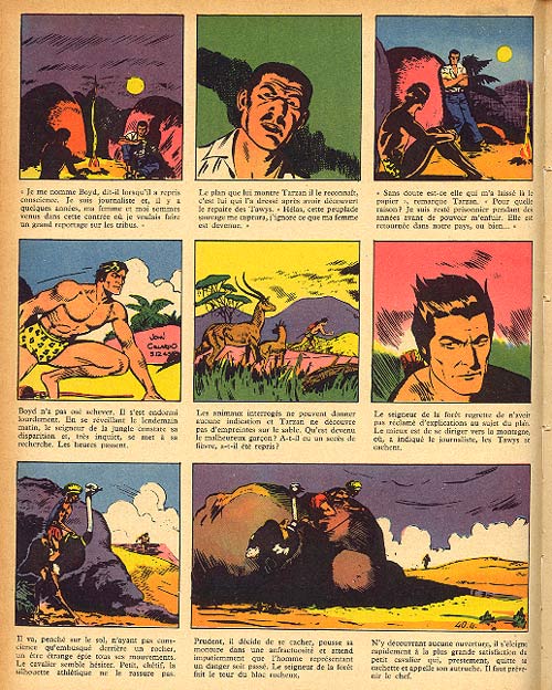 L’aventure ; Hal Foster dessine Tarzan (1927), des inserts de textes dans les cases. Il en résulte une impression figée. En 1937, Burne Hogarth reprend en 1937 la série et lui apporte, grâce à des techniques quasi cinématographiques, une dynamique.